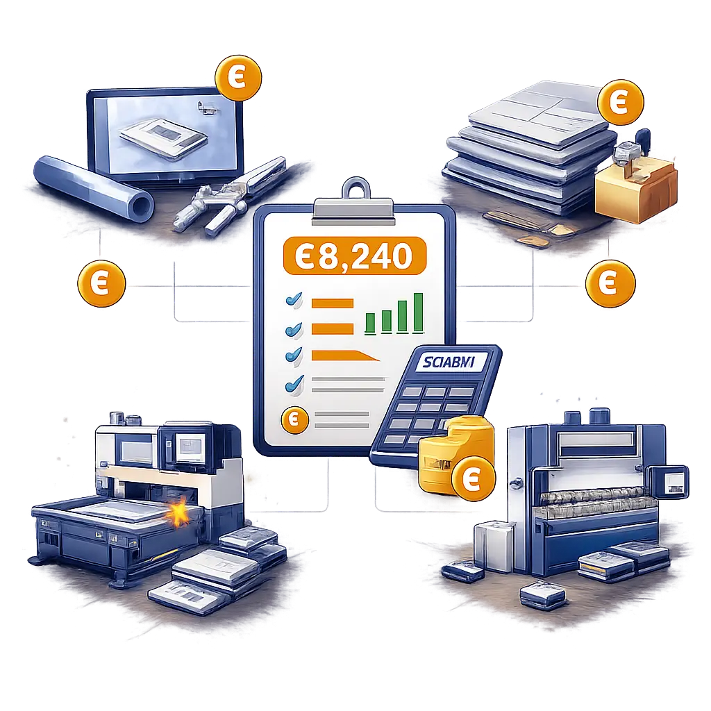 Calculation of costs and times throughout the entire production cycle, integrating cutting, bending, welding, finishing, and ancillary processes into a single quotation